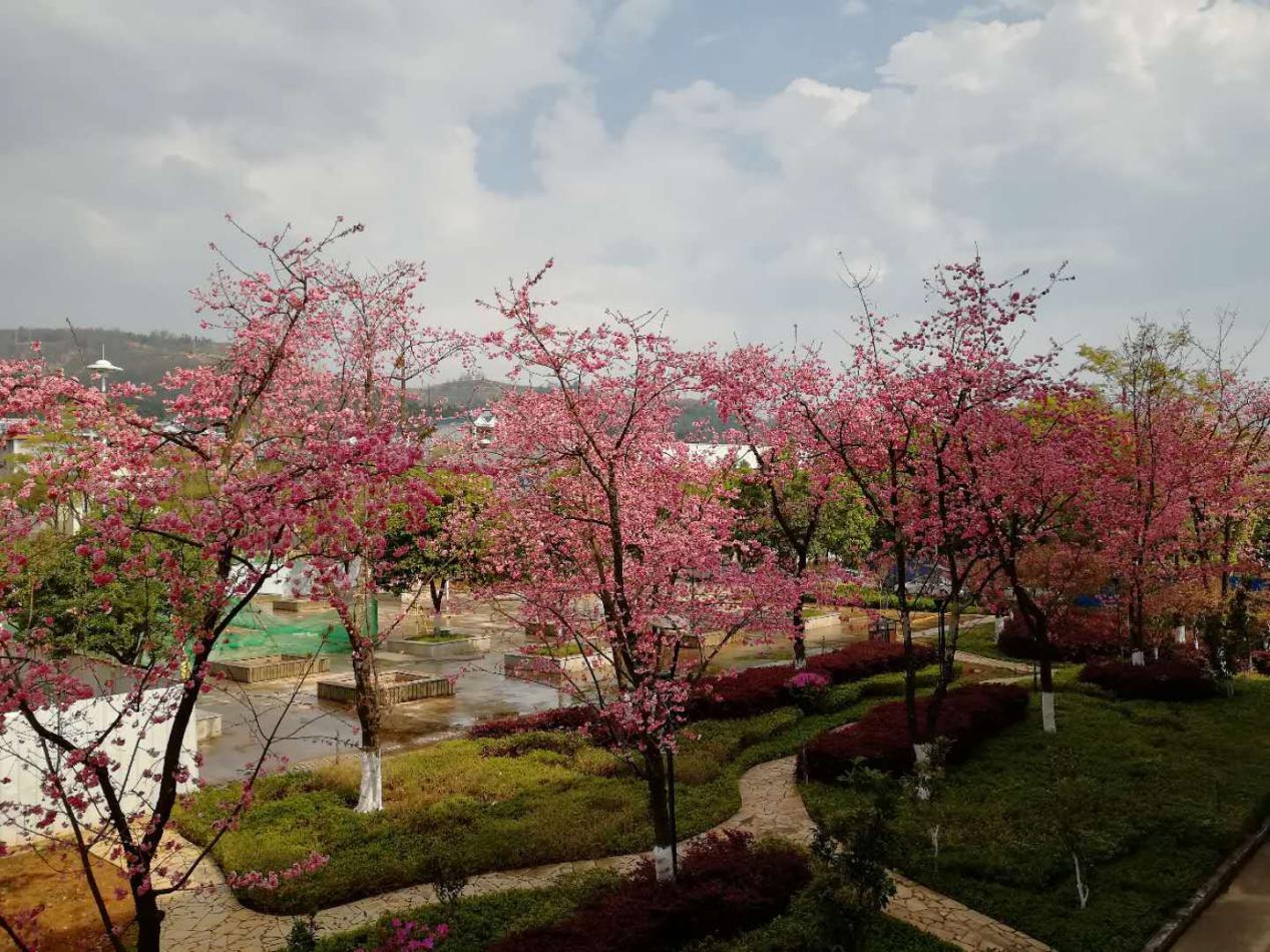 說起安化的春色,不得不提的便是櫻花。辦公樓旁、小花園里隨處都可以看見一簇簇掛在枝頭隨風(fēng)搖曳的櫻花,有的深粉色,有的粉白色,有的花開正盛,有的含苞待放,就像一個(gè)個(gè)嬌滴滴的小姑娘。每當(dāng)春風(fēng)吹過,天空就像下了一場(chǎng)粉紅色的花雨,花瓣落入春的泥土里,滋養(yǎng)了大地,等待開出下一個(gè)花季。