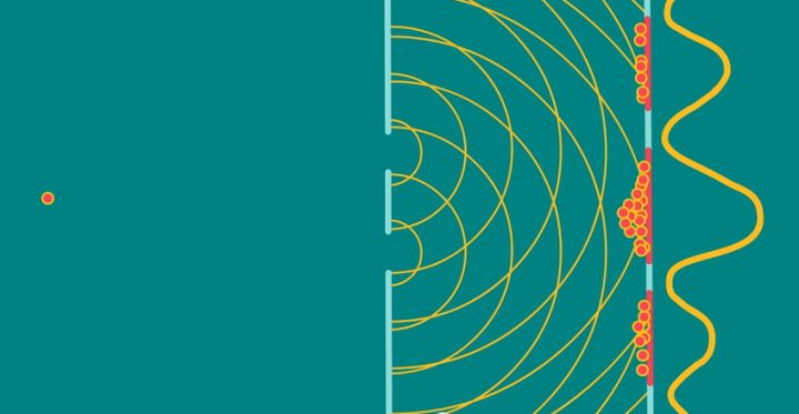 我們知道物質(zhì)是由基本的微觀粒子組成的,而波粒二象性指的是微觀粒子同時擁有“粒子”和“波”兩種術(shù)語來描述的狀態(tài)。簡單描述下,假設(shè)我們在前方豎立一塊木板,木板中央有一道縱向的縫,木板的后側(cè)則是一堵墻。當(dāng)我們向木板發(fā)射電子或光子等基本的微觀粒子,一部分粒子會被木板擋住,而一部分粒子則穿過縫隙落在了木板后側(cè)的墻面上。墻面上就形成了粒子留下的一道縱向條紋。