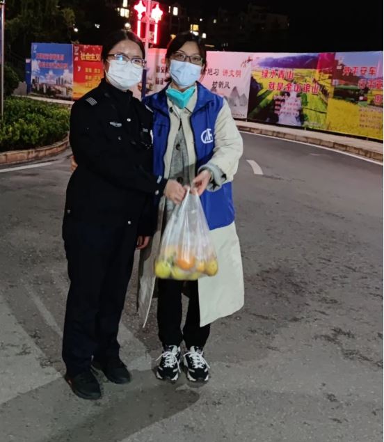 隨時(shí)可以感受到的抗疫愛心“勇動(dòng)”??偛坑须y,分公司支援。公司黨委心系卡點(diǎn)值守志愿者,面對著防疫物資緊缺的情況,火速聯(lián)系分公司為大家配備了防護(hù)服、N95口罩、手套、酒精消毒噴霧、免洗手凝膠等防疫物資,為疫情防控提供了強(qiáng)有力的防疫保障;莫名的小姐姐親自送桔子到卡點(diǎn),輕聲細(xì)語的一句“你們辛苦了”,聽著暖心??!百貨店店員送來的礦泉水,喝著心里真甜!值守人員將隨身攜帶的一盒降壓藥給因?qū)嵤┓饪囟荒芡獬鲑徺I的小伙子救急,小伙子到商店買了一包香煙硬要塞給我們的值守人員,還不好意思地說:“太謝謝你了”!一個(gè)非要讓收下,一個(gè)非不愿收,二人相互推辭著……幸福感爆棚啦!用香煙表示感謝,在我看來或許是吸煙人士之間在這個(gè)特殊時(shí)期最普通但卻是最真摯的表達(dá)吧!工作人員親手為卡點(diǎn)值守志愿者送來愛心工作餐;一群不知名的小伙子們積極主動(dòng)加入民兵志愿者和我們工作人員的隊(duì)伍,一起完成了近1600份政府為住戶們配送的生活物資后,悄然離開……。