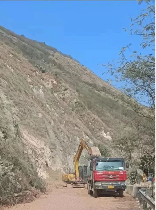 期盼—春節(jié)期間施工隊(duì)伍搶修塌方道路,全廠職工殷切期盼公路早日修通恢復(fù)生產(chǎn)