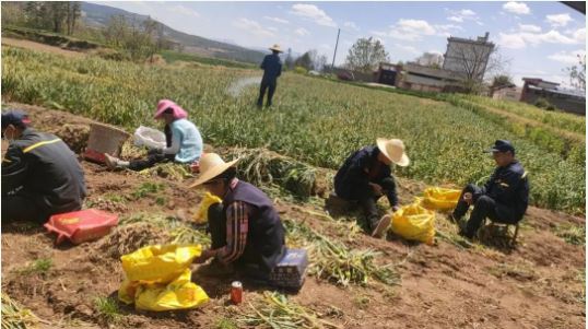 大理分公司黨支部9名黨員及5名共青團(tuán)團(tuán)員分為三組,分別幫助3戶農(nóng)戶搶收大蒜。參與活動的黨員、團(tuán)員冒著炎炎烈日,整整勞作了八個半小時,其間,組與組之間自發(fā)地搞起了“勞動競賽”,田間地頭充滿了濃濃的勞動氛圍。通過大家的辛勤勞作,幫助農(nóng)戶搶收大蒜650多公斤。
